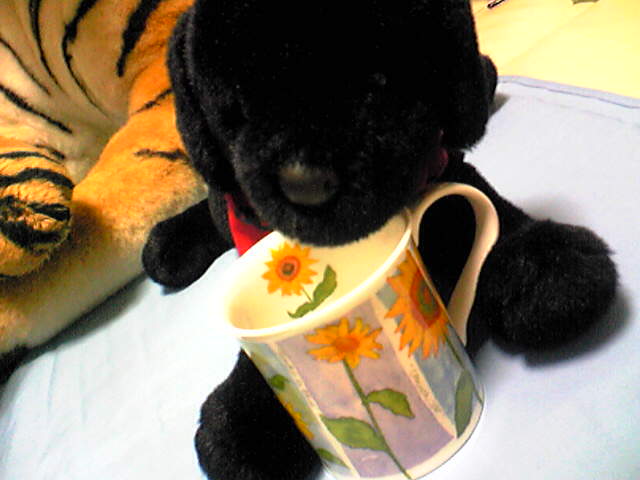 いや、その代わり家にあるネコ科肉食獣のマグカップは食器棚から取り出して、ぬいぐるみ押し込んで棚に飾られています。